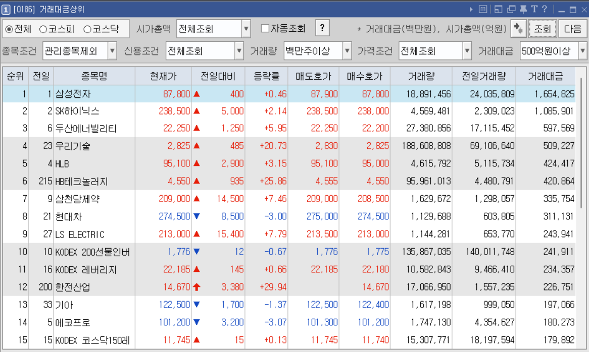 오늘의 거래대금상위종목