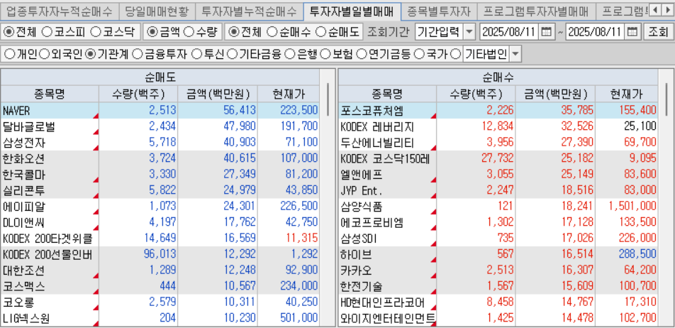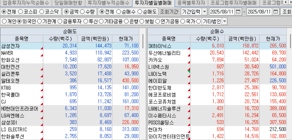 오늘 외국인 기관 순매수 종목은 코스피에서는 원전, 반도체, 2차 전지를 순매수