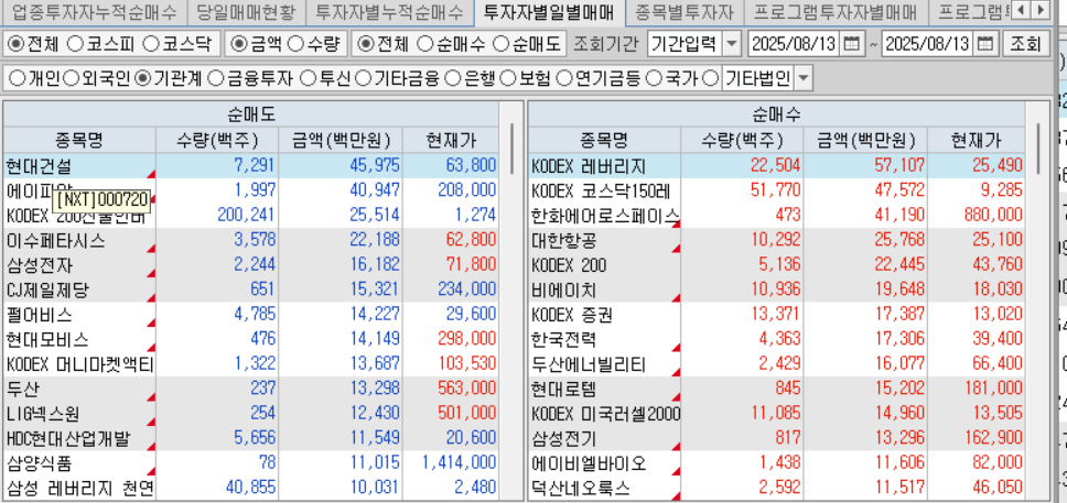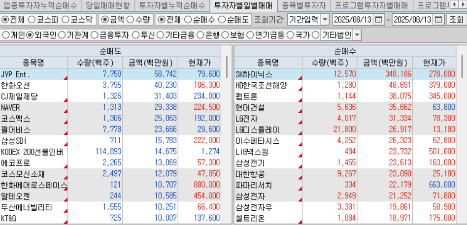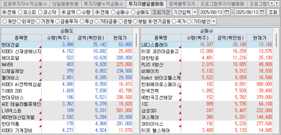 외국인 기관 연기금 순매수 순매도 종목