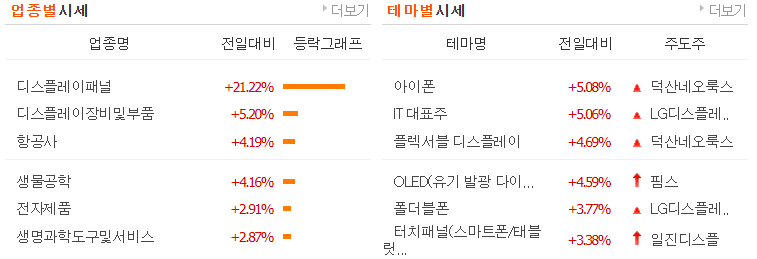 오늘의 주식 시장 정리(주도섹터)