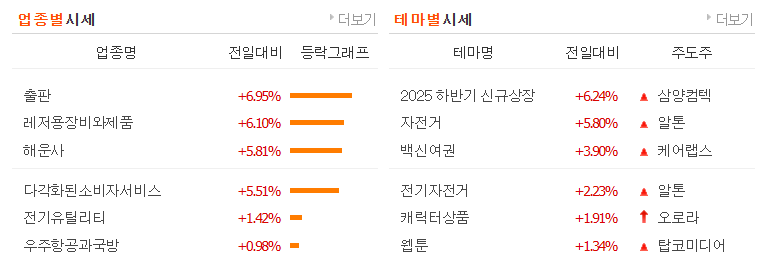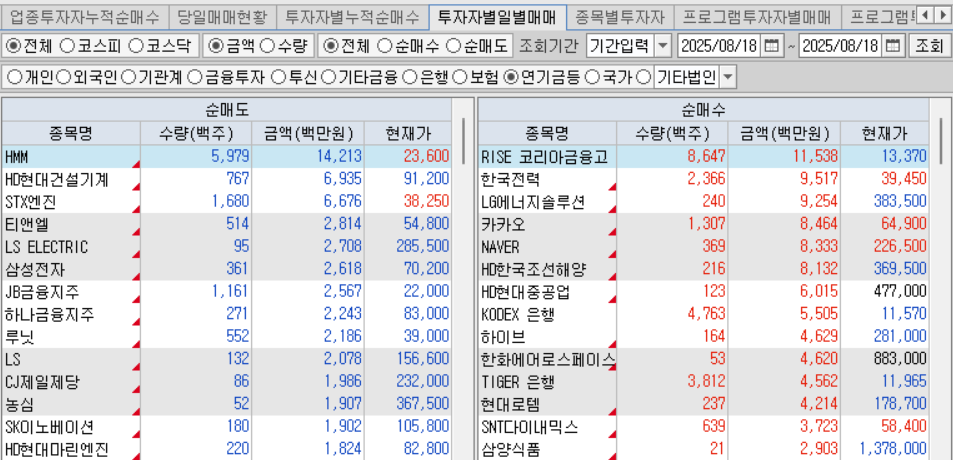 연기금도 전력, 2차 전지, 조선, 엔터, 방산을 순매수함.