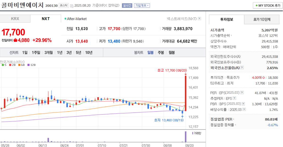 콜마비앤에이치(상), 콜마홀딩스(8.71%)
