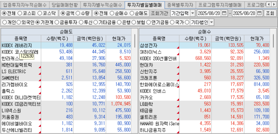 전체 순매도는 원전, 반도체, 방산, 제약바이오를 순매도함.