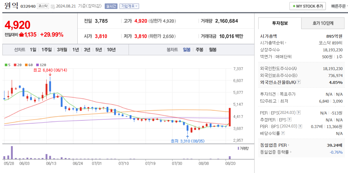다만 시총이 작고 적은 거래량으로 상한가 마감을 해서 변동성이 크게 나타날 듯합니다.