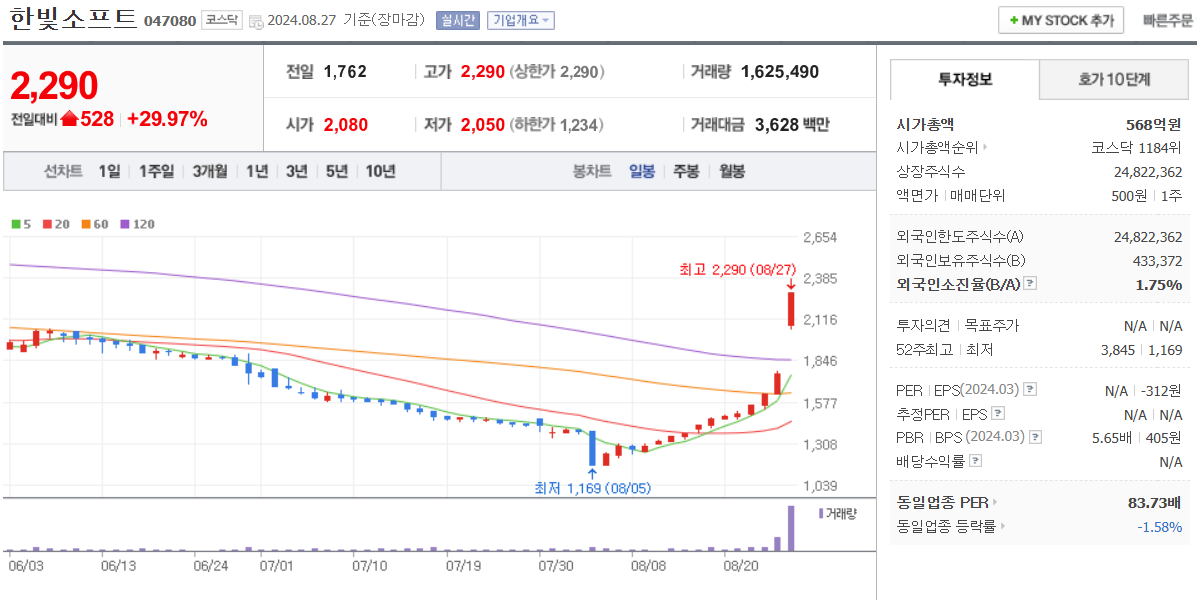 오늘 상한가 이유로는 딥페이크 관련해서 관련주로 부각이 되면서 수급동반 상한가 마감 한 것으로 보입니다.