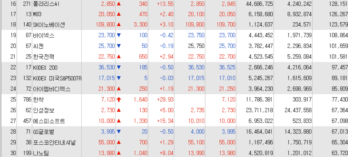 거래대금은 6조 6523억 원으로 어제 하고 비슷한 거래대금이 나왔습니다.