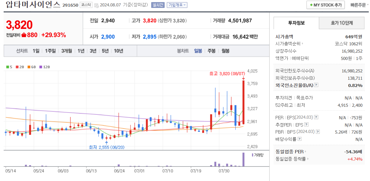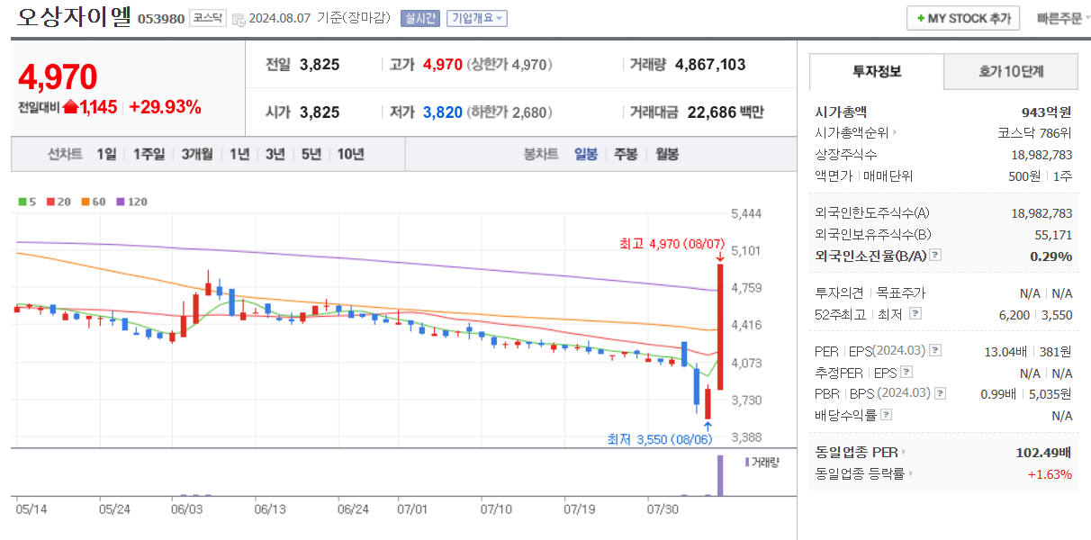 | 8월 5일 주식 상한가 종목 및 시황 정리 (0) | 2024.08.05 |