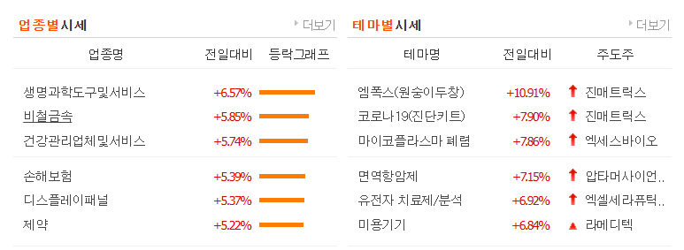 오늘 시장은 양시장 크게 상승을 했는데 반도체, 바이오를 중심으로 크게 상승을 보였고 엔터주 역시 큰 상승을 했습니다. 주도섹터의 부재로 인해서 오늘은 코로나 테마로 상승을 했습니다.
