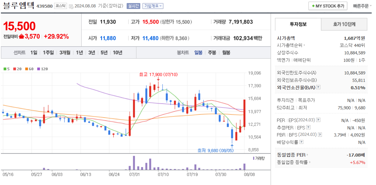 | 8월 5일 주식 상한가 종목 및 시황 정리 (0) | 2024.08.05 |