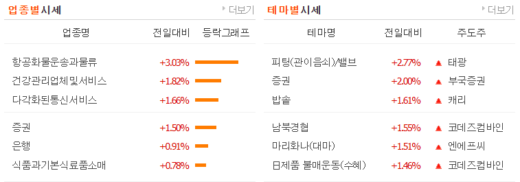 오늘의 주식 시장 정리(테마섹터)