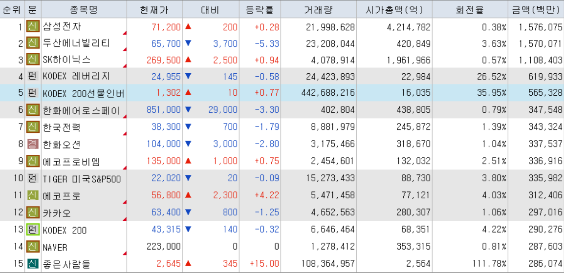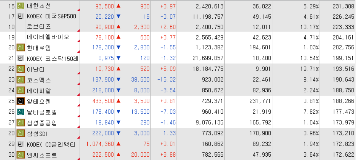 오늘의 거래대금 상위 종목