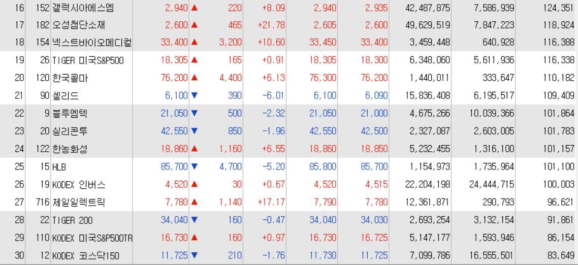거래대금 상위에 올라와 있습니다.