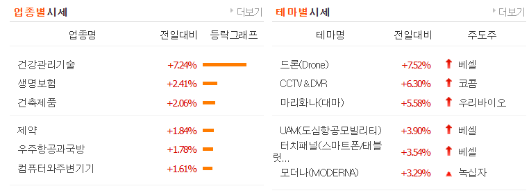 드론 - 베셀(상한가), 네온테크(상한가), 제이씨현시스템(상한가), 코콤(상한가), 피씨디렉트(상한가),