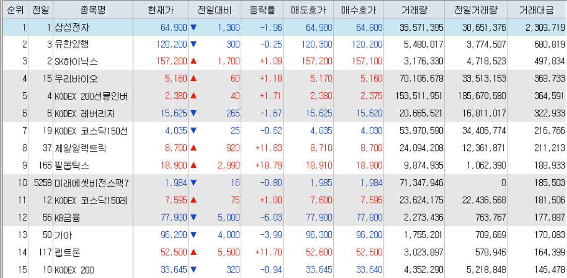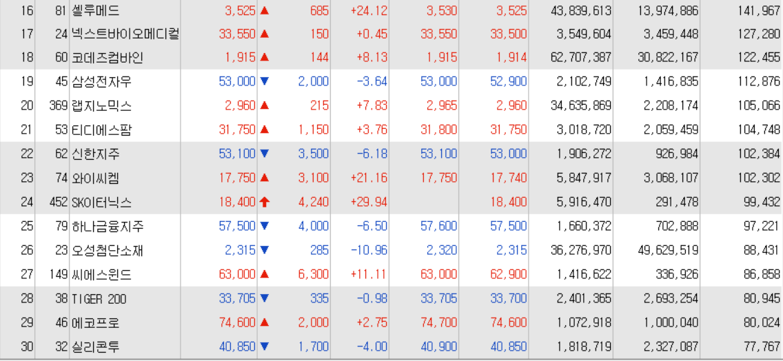 거래대금 상위종목에서도 헤리스 테마관련주들이 상승을 했고 마리화나 테마는 오늘 크게 하락을 했습니다.
