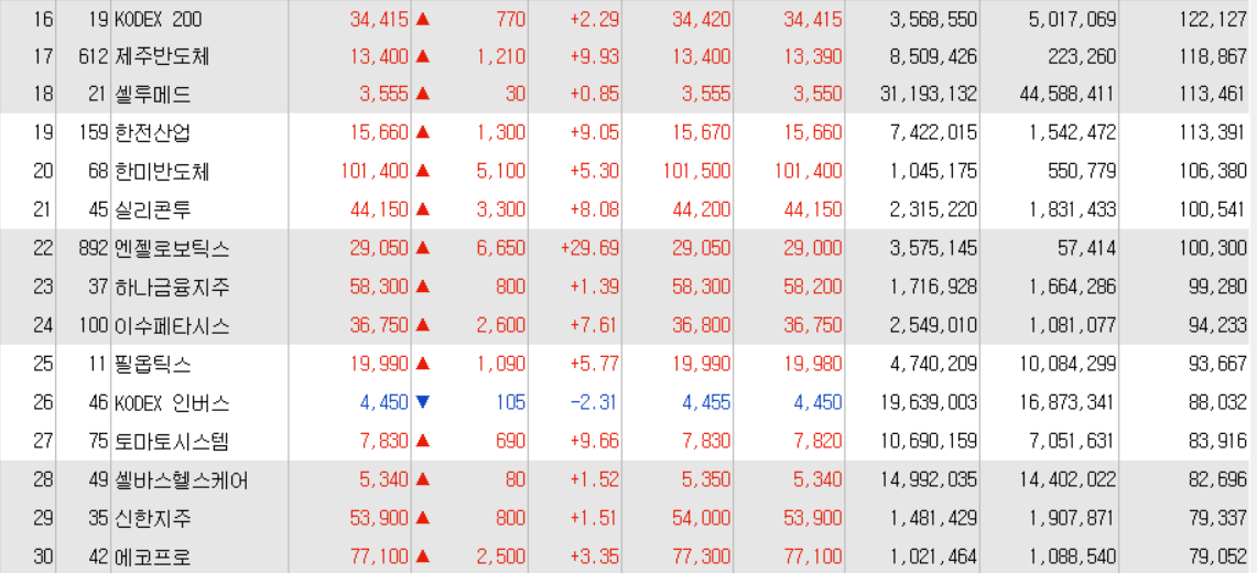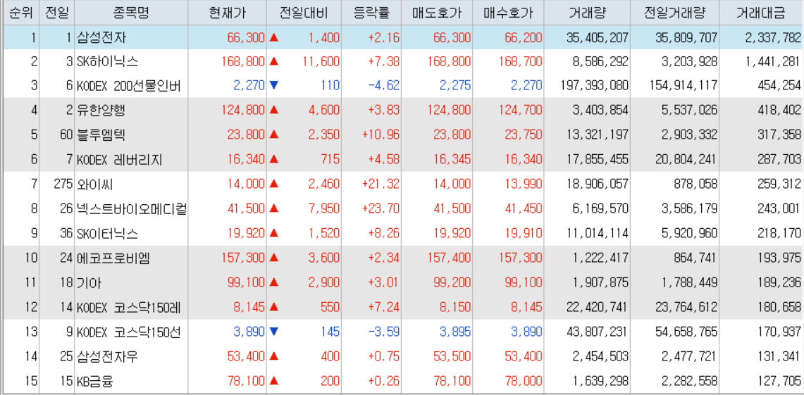 오늘의 거래대금 상위종목