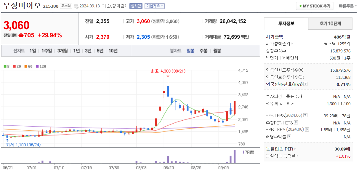 우정바이오(상한가)- 의료공백 및 럼피스킨병 발생 이슈