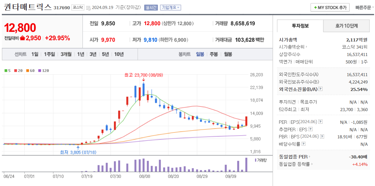 함된 기타 사업을 하고 있습니다. 오늘 상한가 마감을 하면서 역사적 신고가를 경신했습니다.
