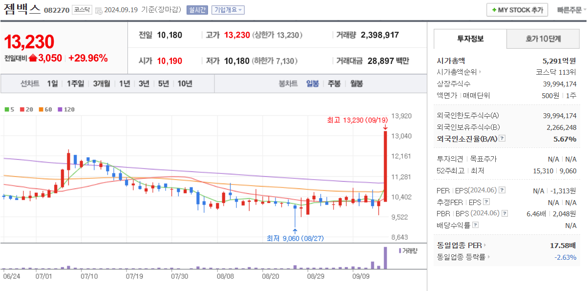 잼백스(상한가)- 3년간 20조 시장독식 17년 연구결실