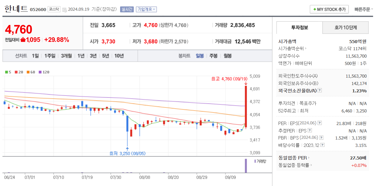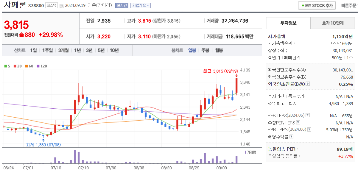 이슈로 오늘도 상한가 마감을 하면서 2 거래일 연속 상한가 마감 했습니다.