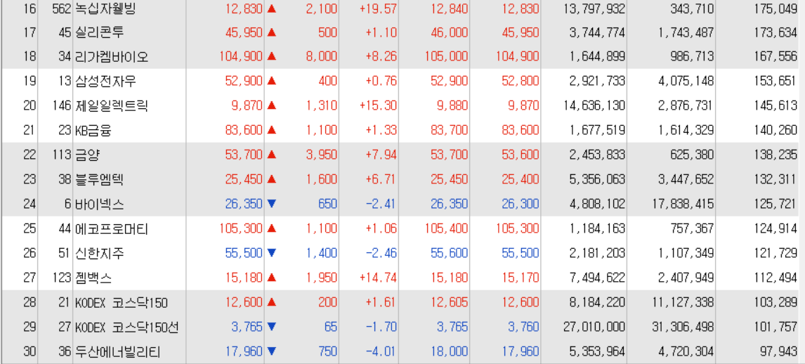 거래대금은 13조 7823억 원이 나오면서 어제보다 9천억 원가량 늘어났습니다.