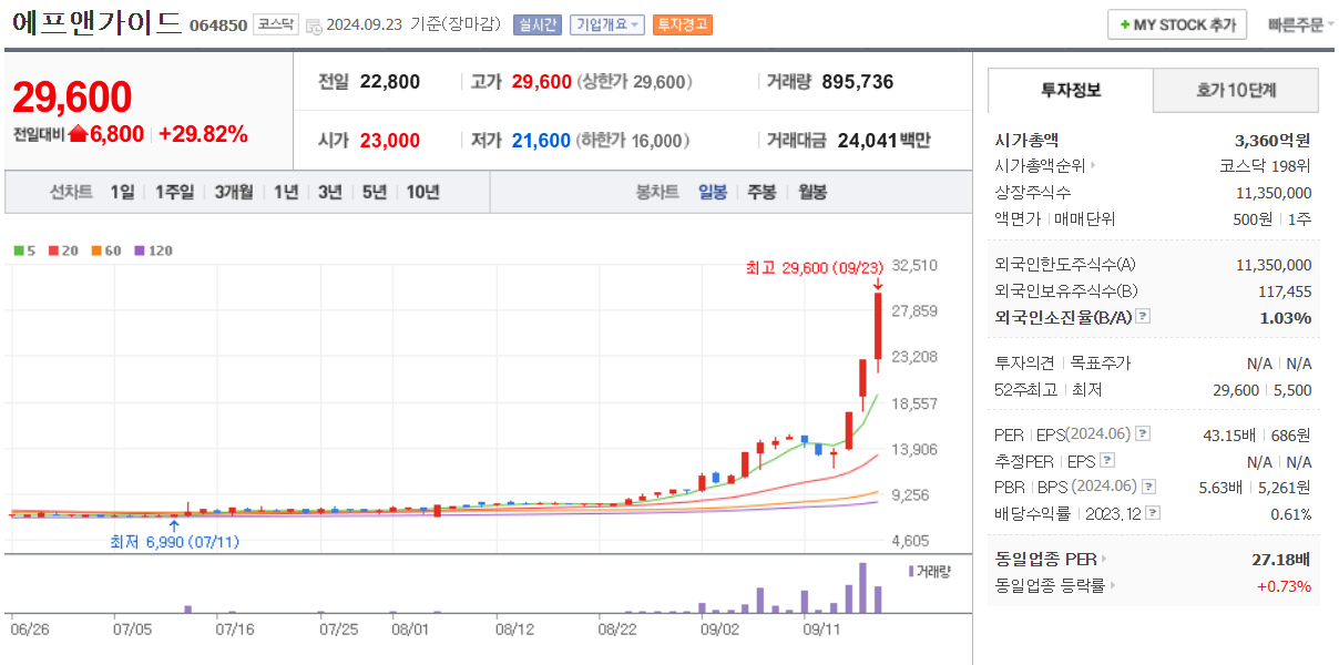 에프앤가이드(상한가)- 경영권 분쟁 이슈 지속