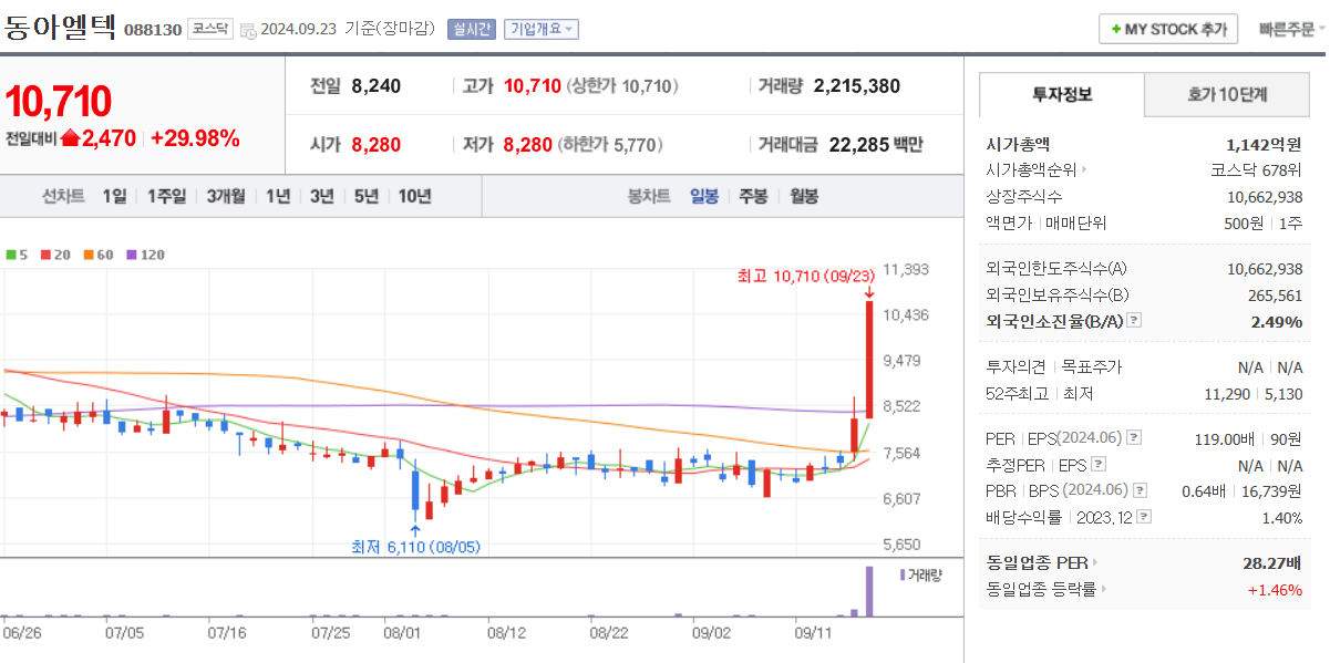 동아엘텍(상한가) - 자사주 소각 이슈 (192억 규모)