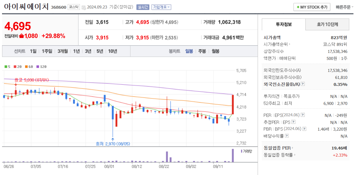| 9월 24일 주식 상한가 종목 및 시황 정리 (4) | 2024.09.24 |