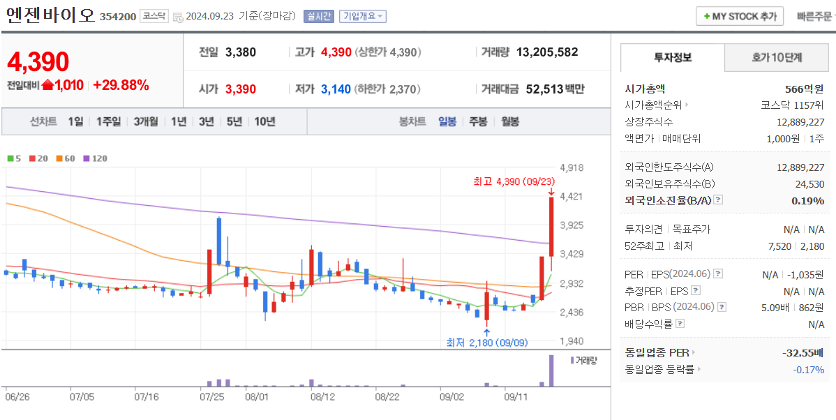 엔젠바이오(상한가) - NGS 세계 첫 상용화 이슈