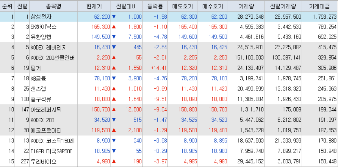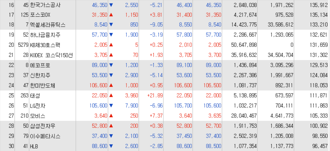오늘 거래대금 상위종목에서는 제약바이오 주가 크게 수익실현으로 인한 것으로 보이며 하락을 했고