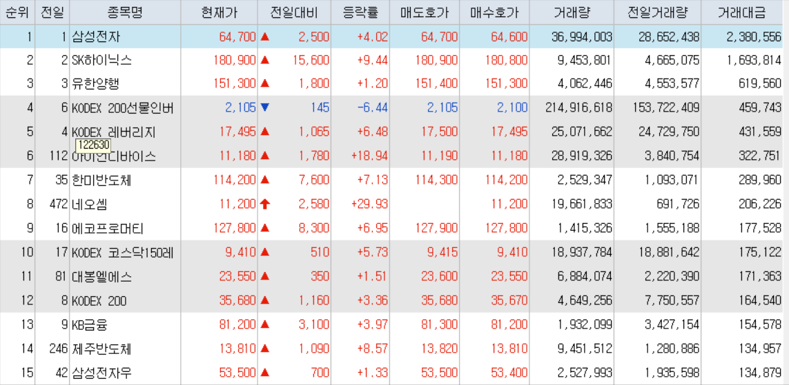 시총상위 종목에서 삼성전자,SK하이닉스가 큰 폭으로 상승을 했고 대부분 종목들이 크게 상승 마감했습니다.