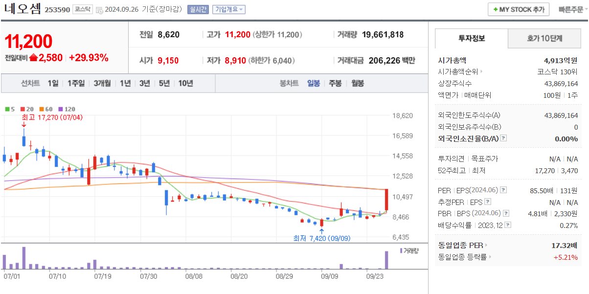 오늘 상한가 이유로는 마이크론 어닝서프라이즈로 인해 중소형 반도체주에 강한 매수세가 몰리면서