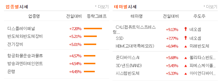 반도체(중소형) - 네오셈(상한가), 피엠티(상한가), 마이크로투나노(상한가), 아이언디바이스(18.94%)