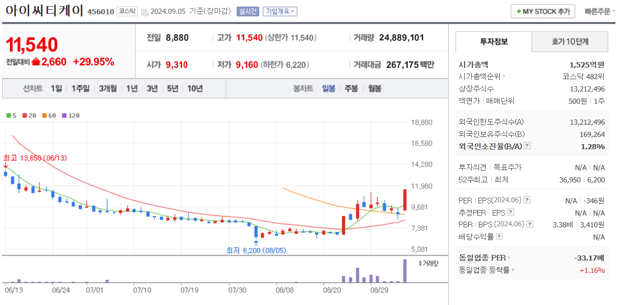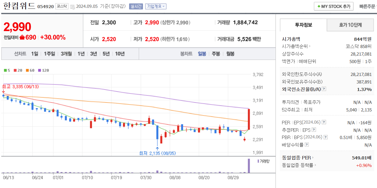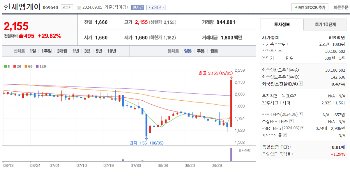 한것으로 보이는데 평소 거래량이 적은 종목이라 변동성은 커 보입니다.