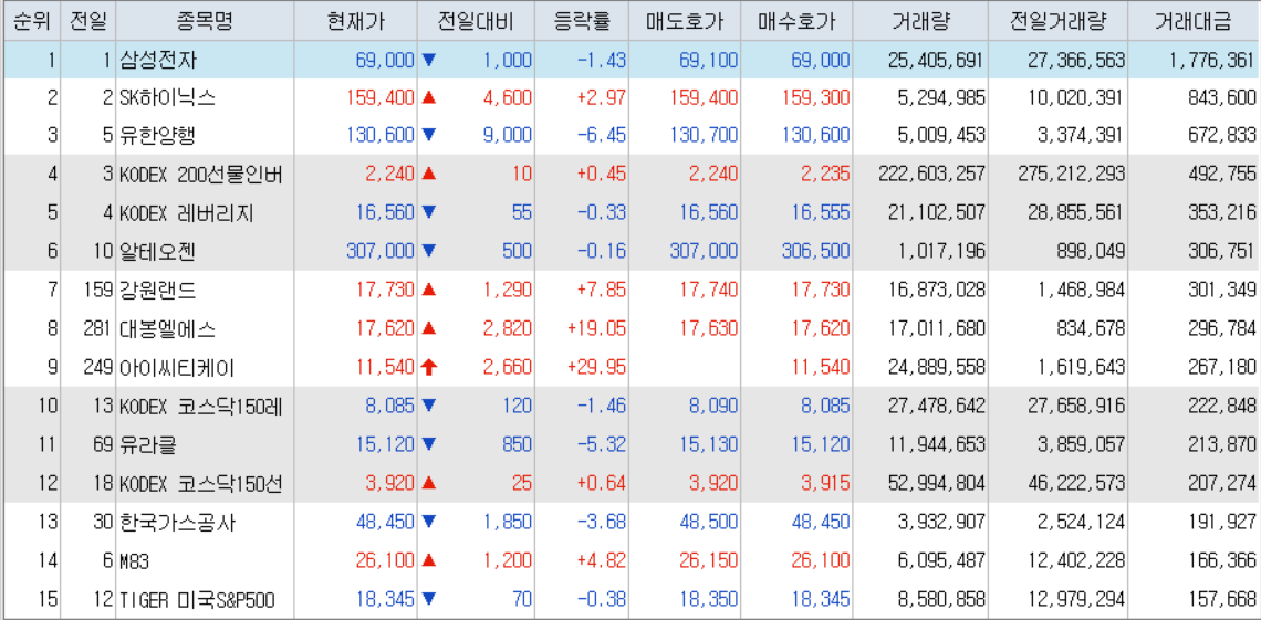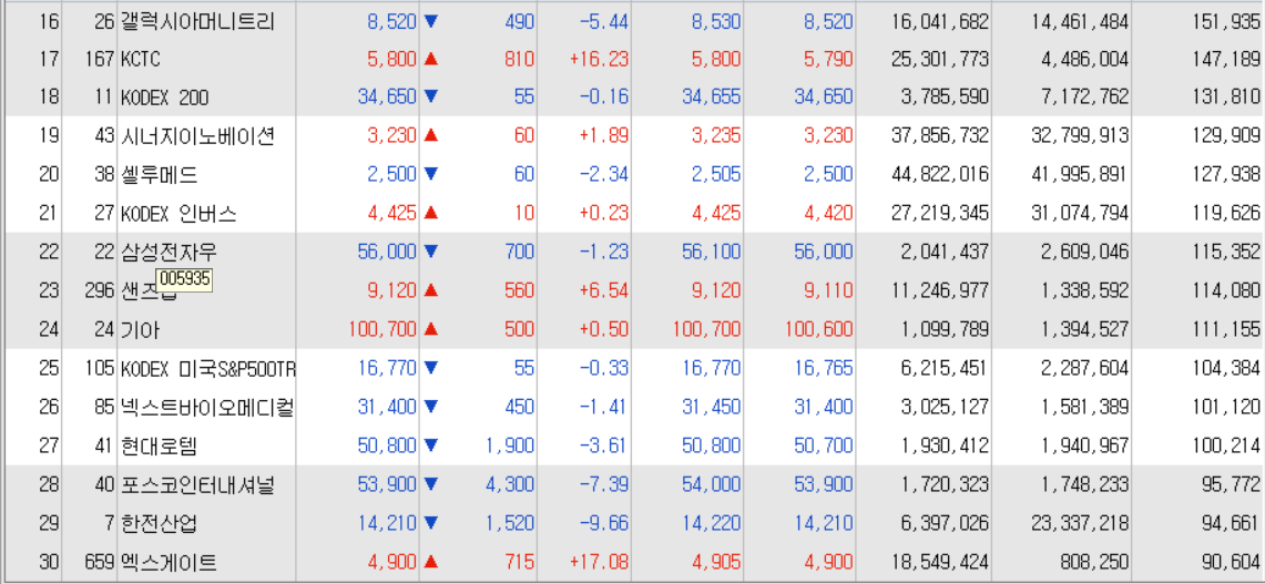 오늘 거래대금 상위종목에서는 강원랜드가 증설이슈와 함께 주목을 받으면서 상위종목에 올라왔고