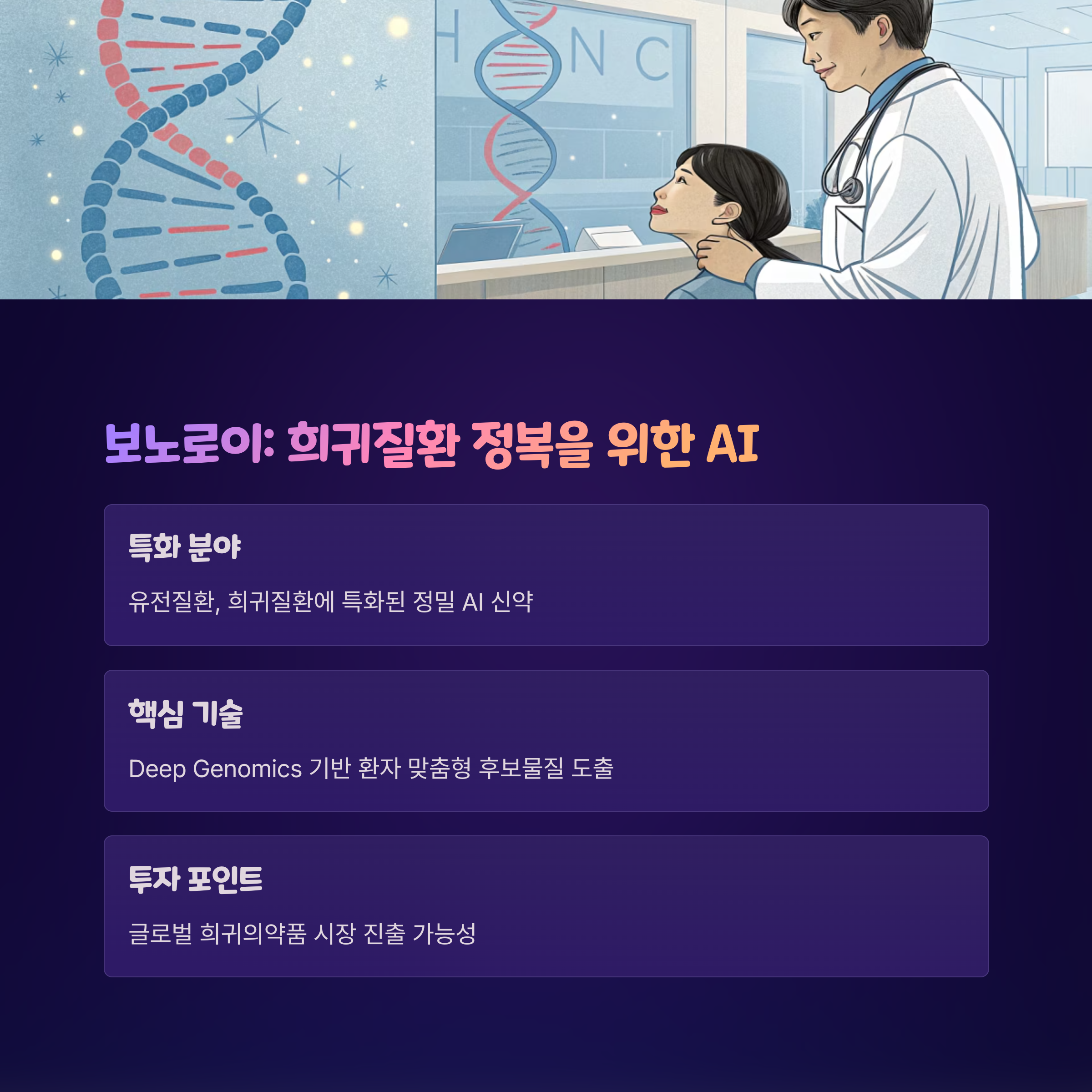 | 보노로이 | 정밀의료 AI | 희귀질환 | 맞춤 치료 기반 |