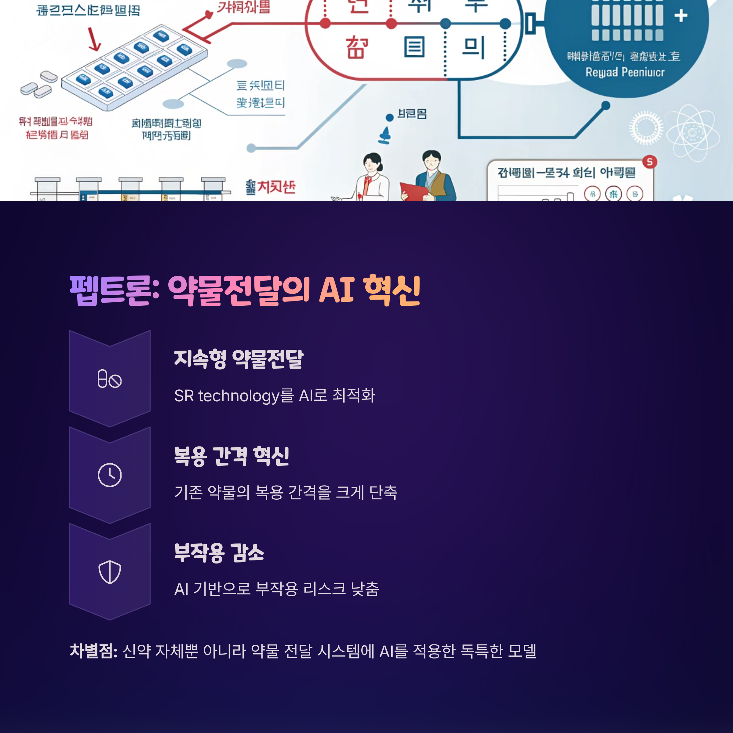 펩트론은 **지속형 약물전달 시스템(SR technology)**을 AI로 최적화해