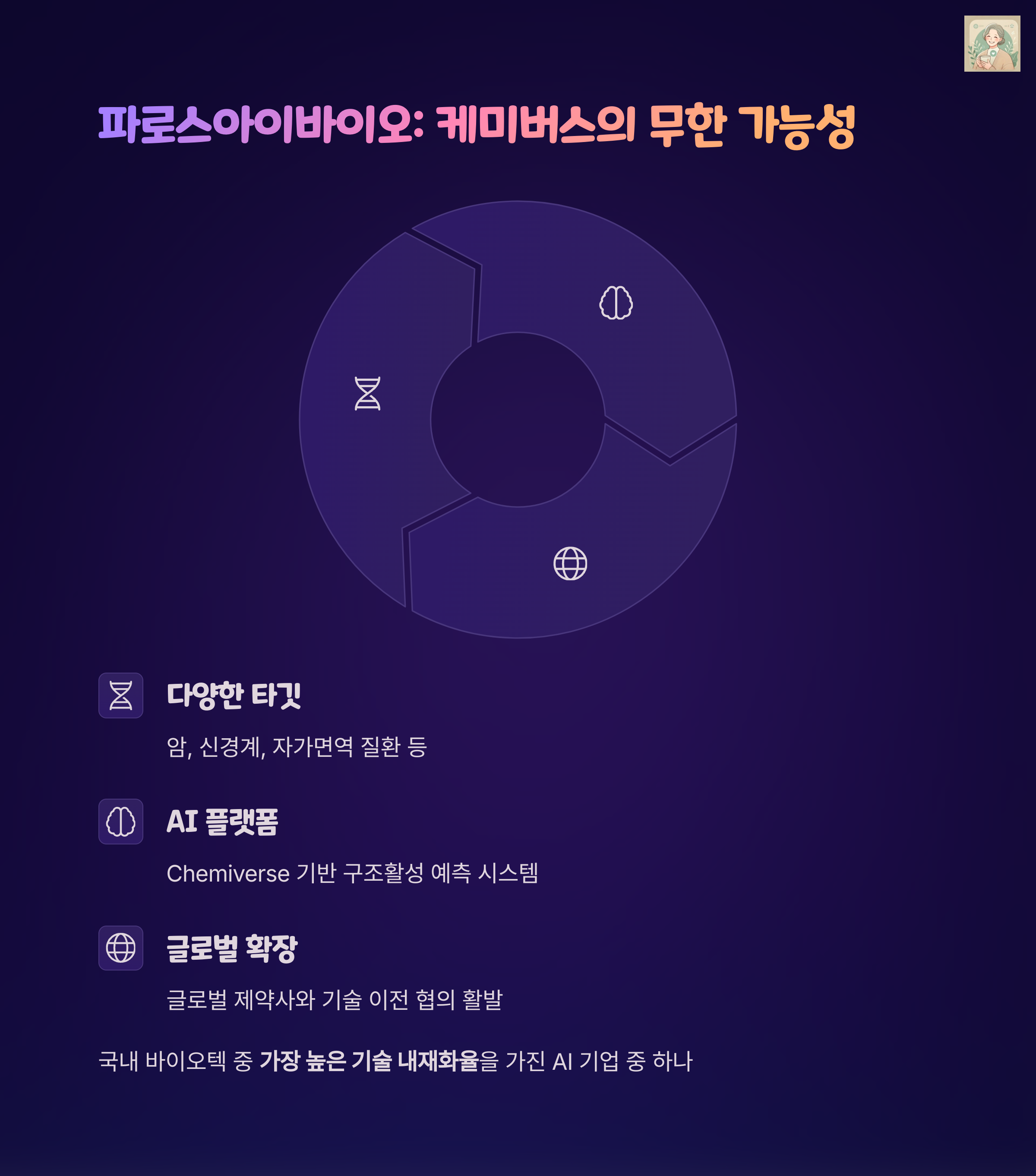 | 파로스아이바이오 | Chemiverse 플랫폼 | 신경·자가면역 | 글로벌 기술이전 추진 |