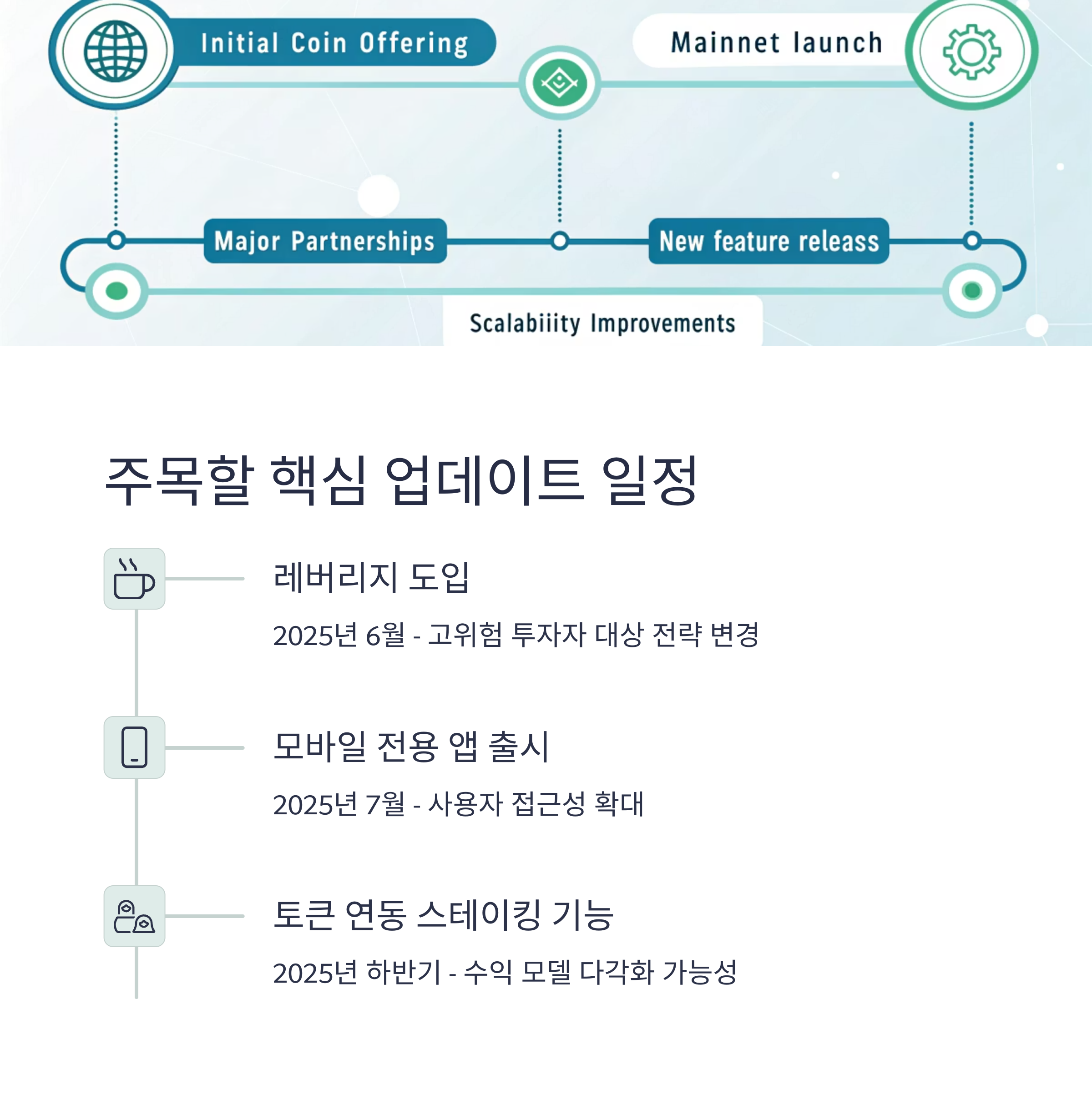 | 토큰 연동 스테이킹 기능 | 2025년 하반기 | 수익 모델 다각화 가능성 |
