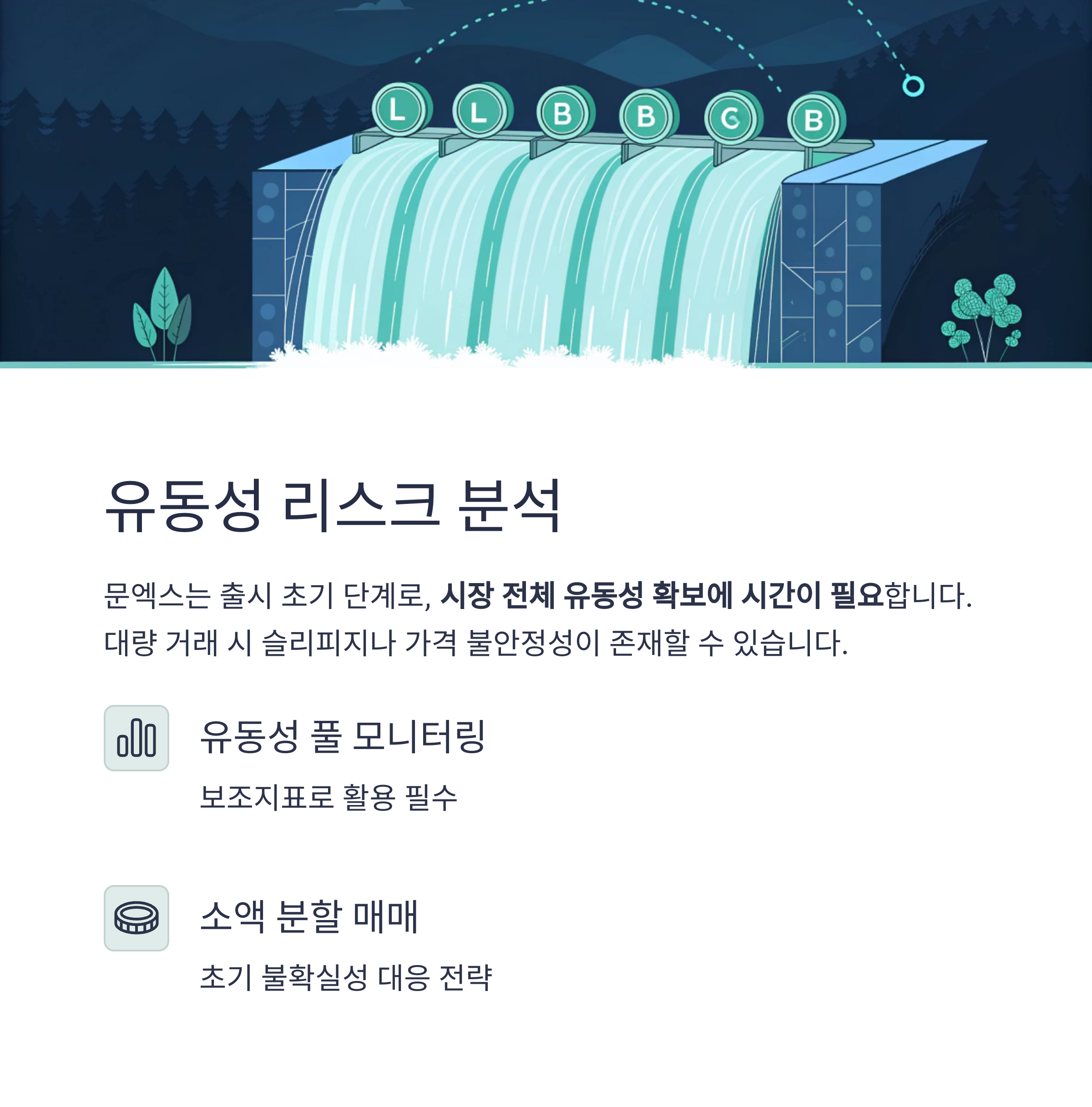 문엑스는 출시 초기 단계이므로, 아직 시장 전체 유동성 확보에는 시간이 필요합니다.