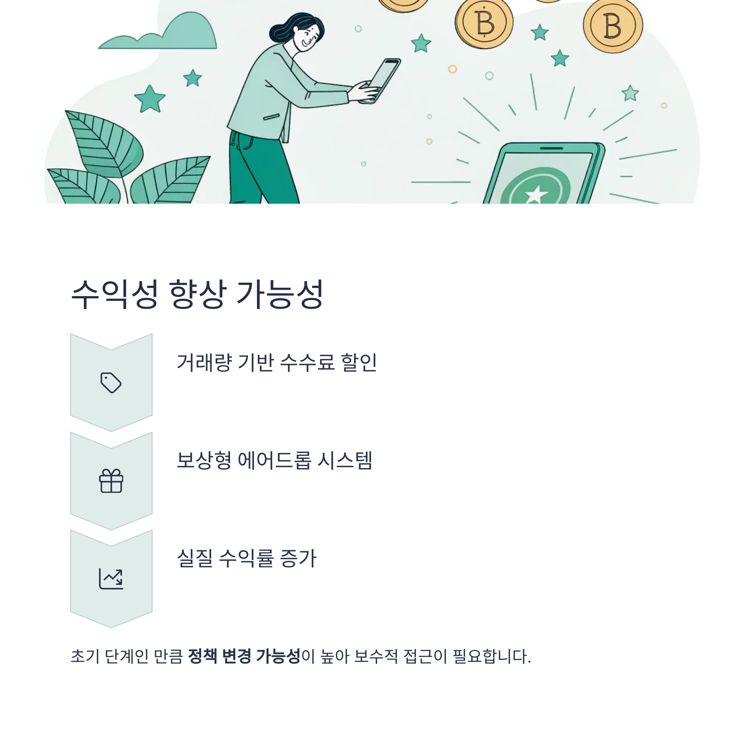 하지만 정책 변경 가능성이 높은 초기 단계인 만큼, 수익모델 안정성 확보까지는 보수적 접근이 필요합니다.