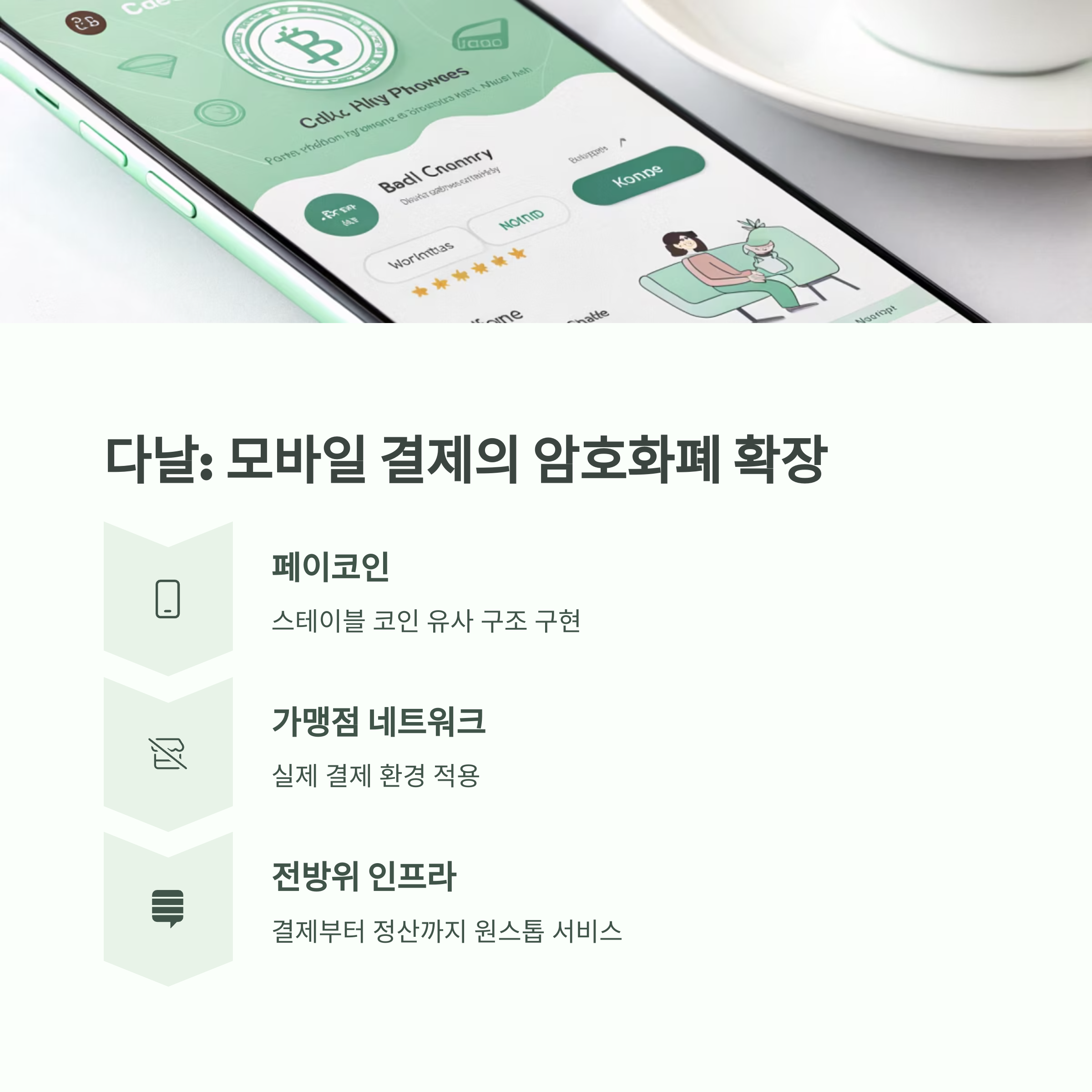 | 다날 | 모바일 결제 및 암호화폐 결제 솔루션 | 실물 경제 결제에 가까운 구조 구현 |