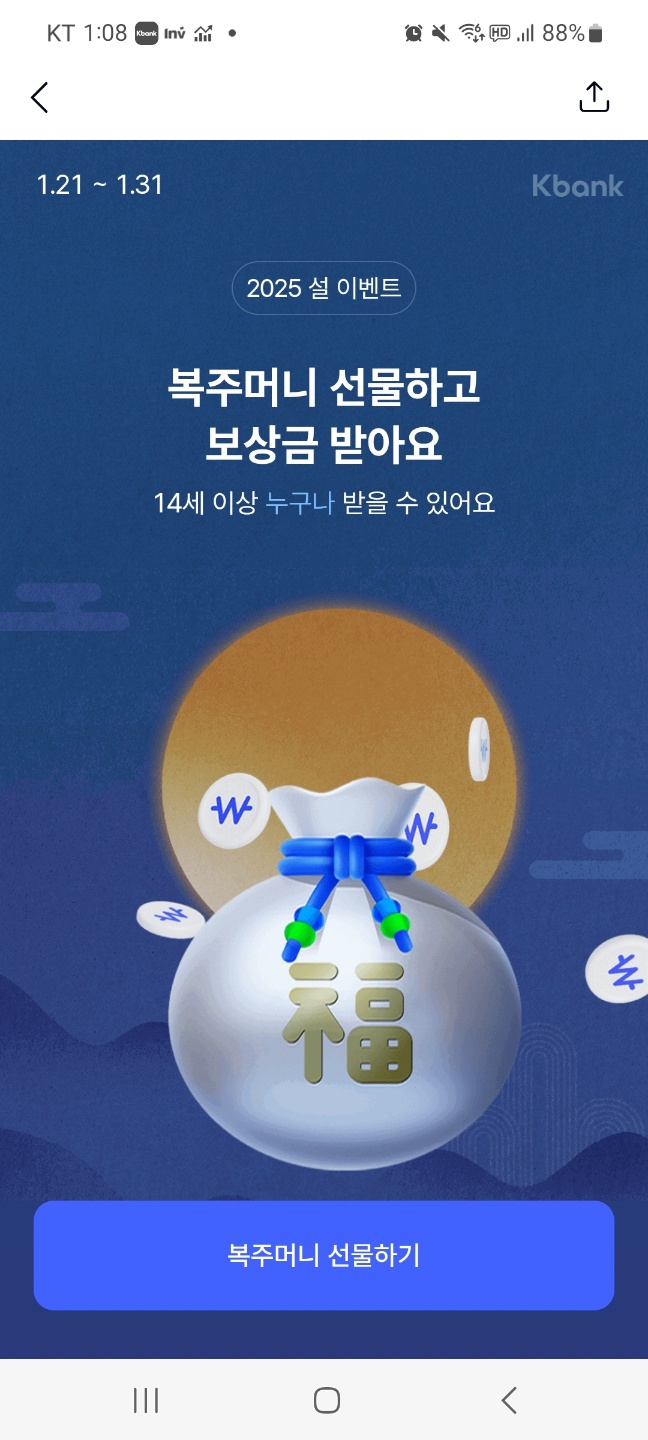 2025년 설을 맞이해서 케이뱅크에서 복주머니 이벤트를